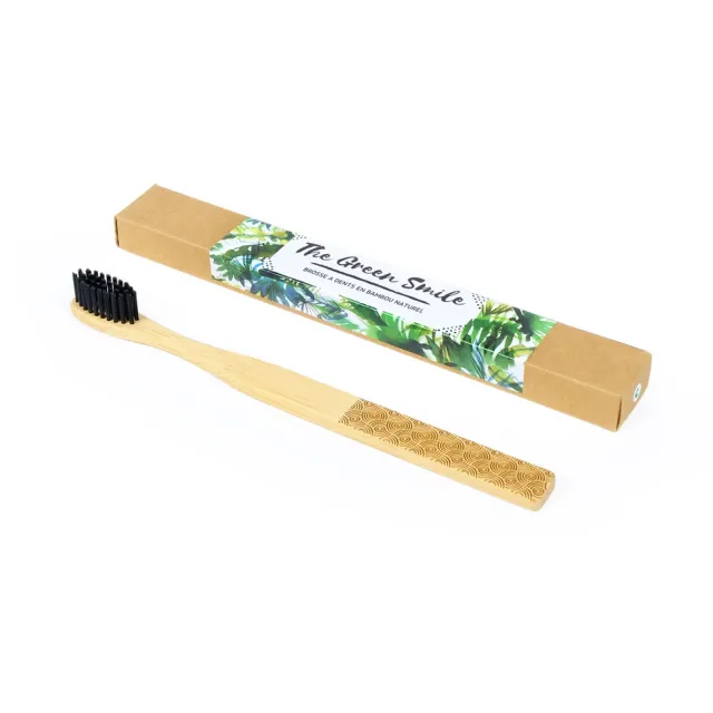 Les brosses à dents en bambou à motifs pour adultes de la marque The Green Smile est un bon choix écologique pour prendre soin de votre hygiène dentaire. Conçue en bambou 100% naturel et sans BPA, les poils de la brosse à dents sont en fibres noires en nylon biosourcé, au charbon pour un pouvoir blanchissant et rafraîchissant pour l'haleine. Le manche de la brosse à dents est décoré par un élégant motif pyrogravé. Vous aurez le choix entre 3 modèles différents : feuilles, ronds ou vagues, chacun trouvera son bonheur. Les poils sont aussi doux pour vos gencives que efficaces pour éliminer les résidus alimentaires. La dureté des fibres se situe entre médium et souple.
