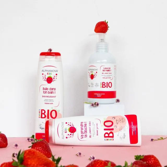 Transformez le moment du bain en un pur délice avec ce lot de produits pour le bain à la fraise Alphanova, spécialement conçu pour les enfants. Ce lot comprend un gel lavant 3 en 1, un gel lavant pour les mains et un bain moussant, tous formulés avec des ingrédients naturels et biologiques pour une expérience de bain agréable et fruité !