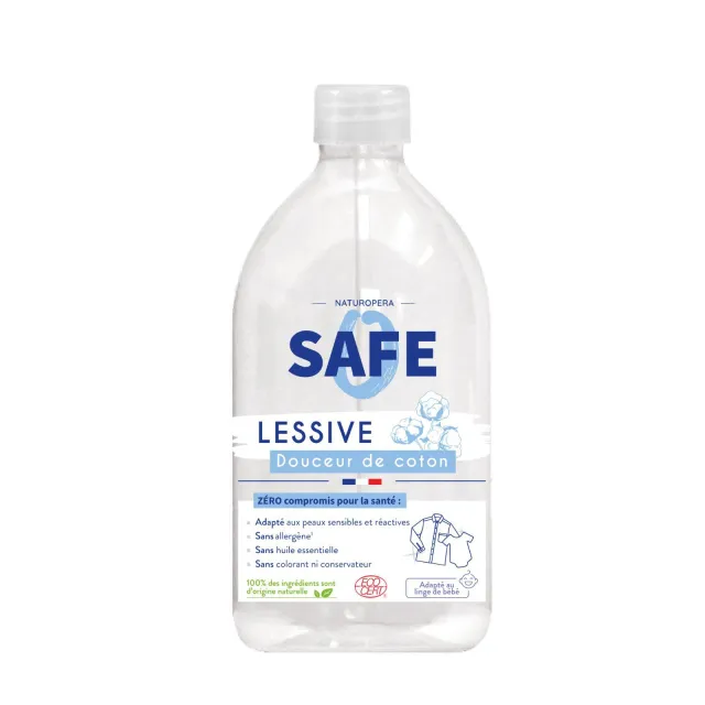 Cette lessive est formulée à partir d'ingrédients 100% d'origine naturelle, sans huile essentielle, sans colorant ni conservateur. Testée dermatologiquement, elle est idéale pour les peaux sensibles et réactives, ainsi que pour le linge de bébé. Sa douceur n'entame en rien son efficacité : elle élimine les saletés et les taches tenaces tout en préservant la couleur et la texture de vos vêtements. Soucieux de l'impact environnemental, Safe a développé cette lessive avec des ingrédients biodégradables, minimisant ainsi son empreinte écologique. De plus, sa fabrication en France garantit un contrôle qualité optimal tout en soutenant l'économie locale.