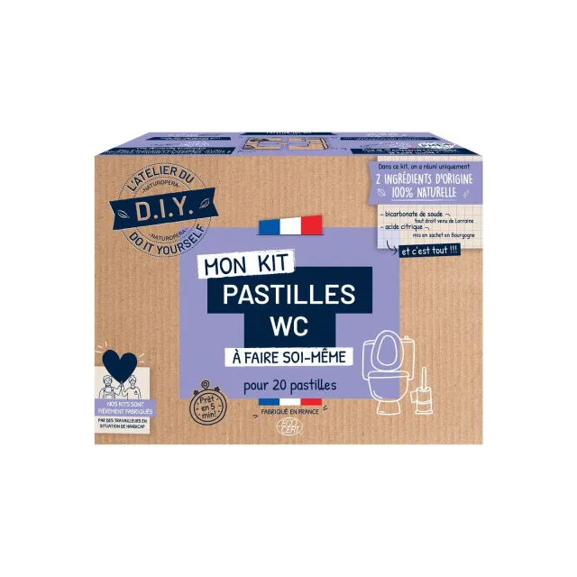 Ce Kit DIY pour pastilles WC de L'Atelier du DIY est une solution rapide et écologique pour un entretien naturel et efficace de vos toilettes ! Pré-dosé et simple d'utilisation, ce kit contient tous les ingrédients nécessaires pour réaliser 20 pastilles nettoyantes en 5 minutes seulement. La recette est 100% personnalisable avec les huiles essentielles de votre choix, pour une senteur qui vous ressemble. Tous les ingrédients sont d'origine naturelle, certifiés Ecocert, et proviennent de régions françaises !