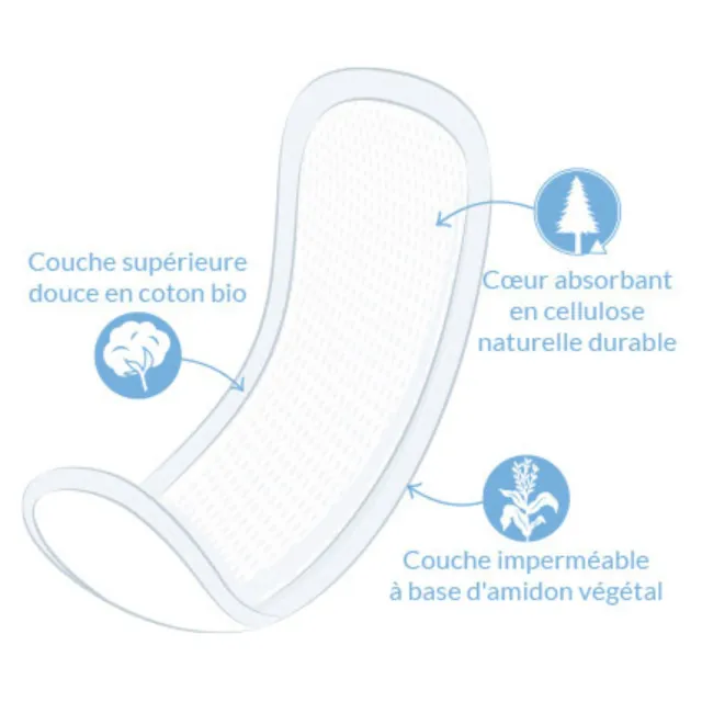 L'une des plus grandes fiertés de Natracare est de proposer une alternative totalement exempte de plastique. Saviez-vous que les protections conventionnelles peuvent contenir jusqu'à l'équivalent de cinq sacs plastiques ? Ici, c'est tout l'inverse. Le voile en contact direct avec votre peau est composé de coton biologique certifié à 100 %. Cela signifie que votre zone intime respire naturellement, évitant ainsi les irritations ou les sensations de macération désagréables que l'on peut ressentir avec des matériaux synthétiques. C'est un choix de douceur qui fait toute la différence pour les peaux sensibles.