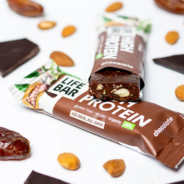 Une barre énergétique crue et vegan alliant la gourmandise du chocolat à la puissance des protéines végétales.