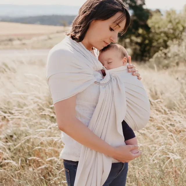 Pour les mamans allaitantes, le My Sling devient un allié précieux avec son anneau d'ajustement. Il vous suffit de desserrer cet anneau pour positionner bébé au sein en toute discrétion, permettant ainsi ces moments précieux où que vous soyez.